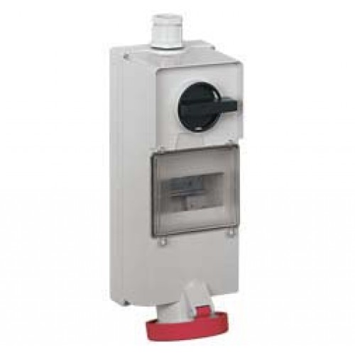 interlocked switched socket-outlets, sockets, 3 poles + N + PE, 63 (A.C.), 346 ÷ 415V, 6 red, with compartment for modular units, n° 7 modules DIN-rail EN 60715, IP55